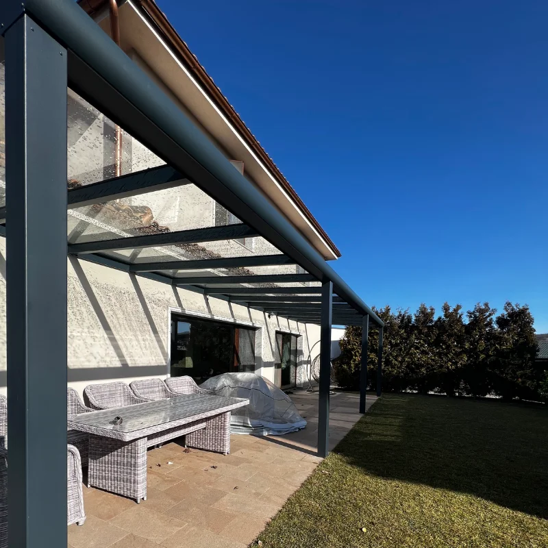Structurile Alisterm combină funcționalitatea cu estetica printr-o structură de aluminiu și sticlă laminată, garantând rezistență. Cu profile de aluminiu fără barieră termică și opțiunea de vopsire în multe culori RAL, se potrivește oricărui stil arhitectural.