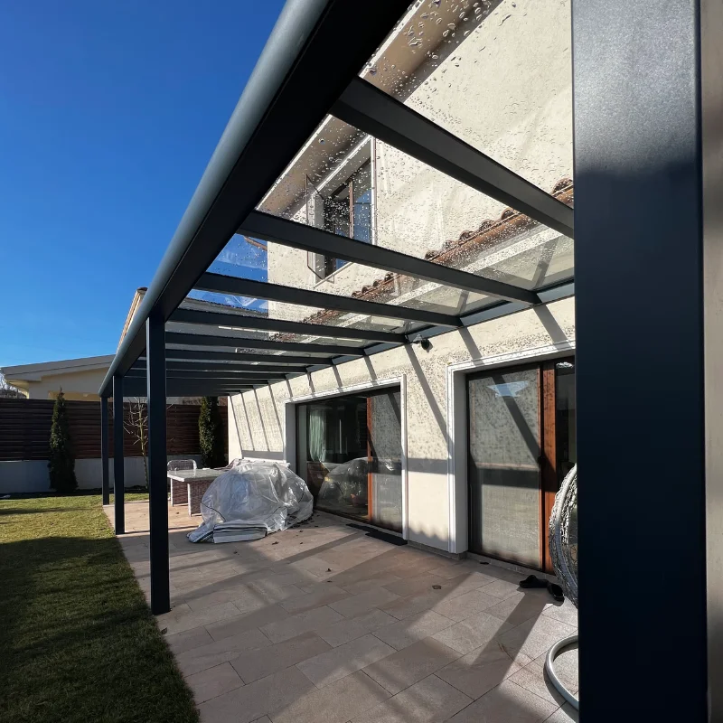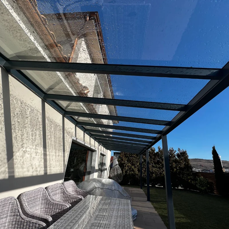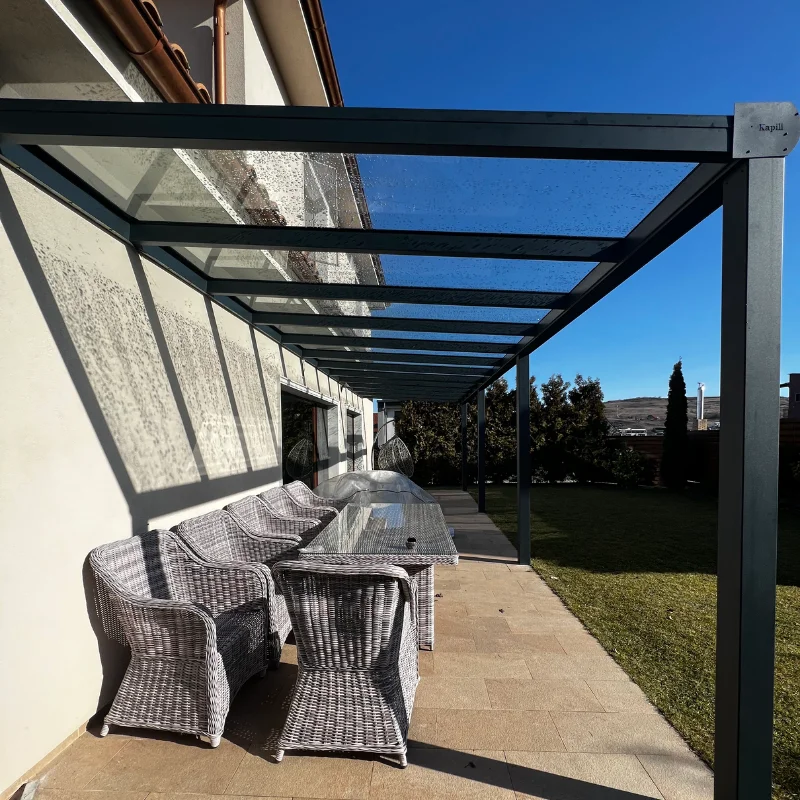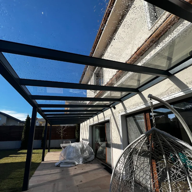 Vopsirea electrostatică asigură durabilitate, iar sistemul de prindere a sticlei și drenajul apei pluviale adaugă eficiență și siguranță.